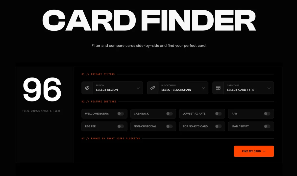 The goal isn’t to decide for you, it’s to help you discover the best fit fast, even if you’re exploring crypto cards for the first time.